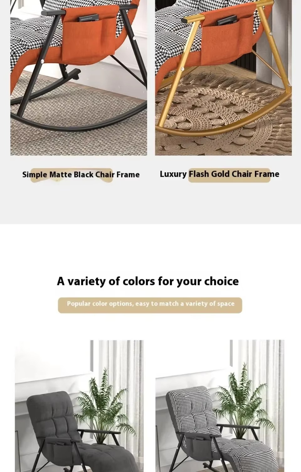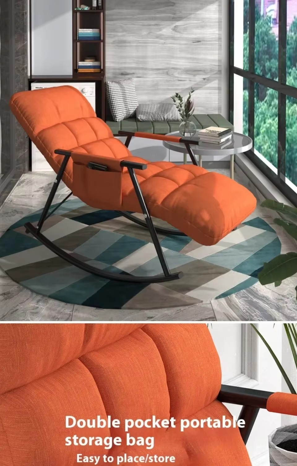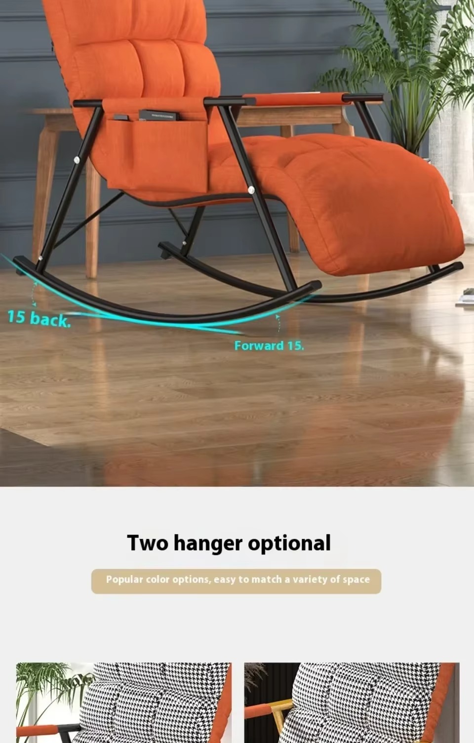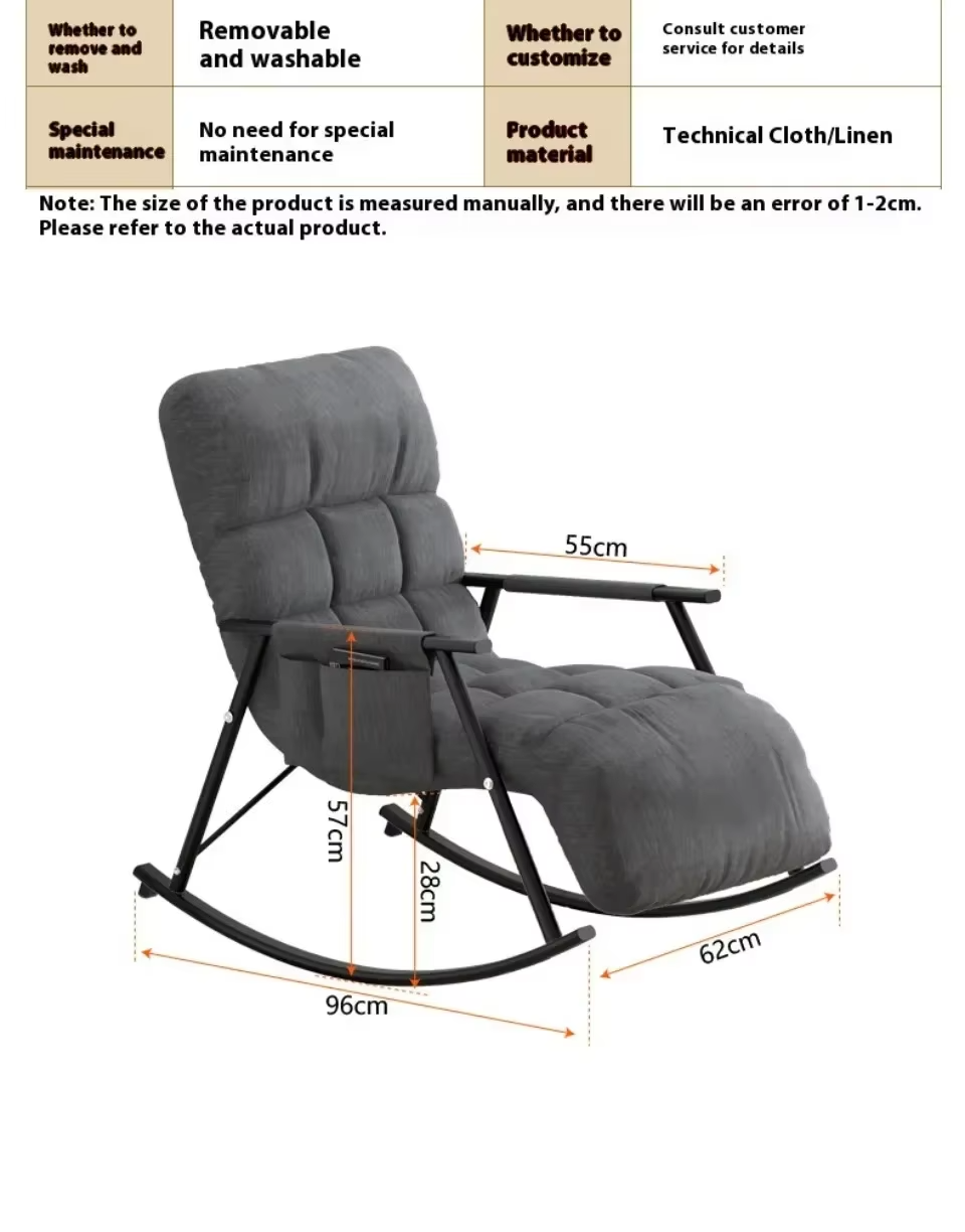 2. مثالية في الجودة: تزج نفسك في أقصى درجات الاسترخاء مع كرسي هزاز داخلي لدينا. المادة المخملية عالية الجودة مليئة بالقطن المرتد العالي الذي يوفر راحة ودعم مثاليين. وسادة قابلة للإزالة وقابلة للغسل بسحاب قوي تضمن سهولة التنظيف والصيانة.