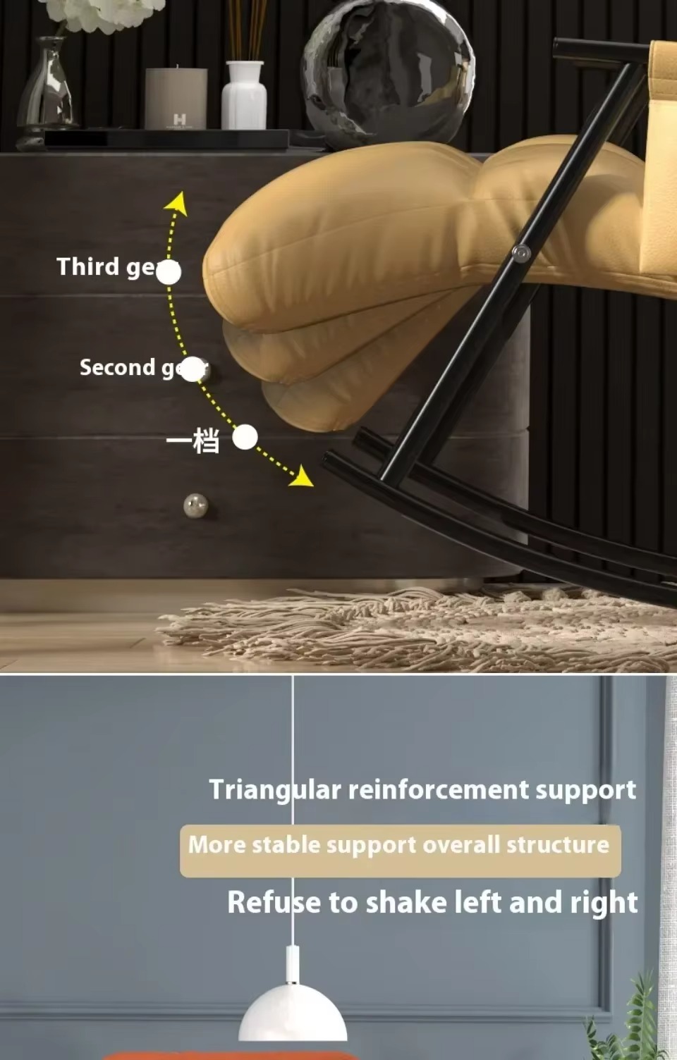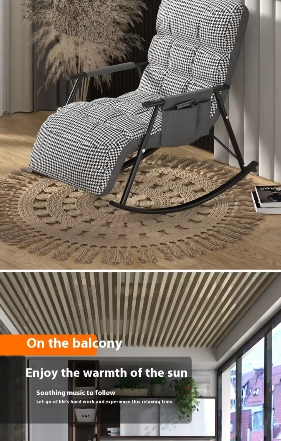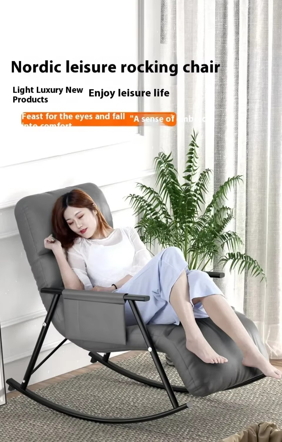 2. مثالية في الجودة: تزج نفسك في أقصى درجات الاسترخاء مع كرسي هزاز داخلي لدينا. المادة المخملية عالية الجودة مليئة بالقطن المرتد العالي الذي يوفر راحة ودعم مثاليين. وسادة قابلة للإزالة وقابلة للغسل بسحاب قوي تضمن سهولة التنظيف والصيانة.