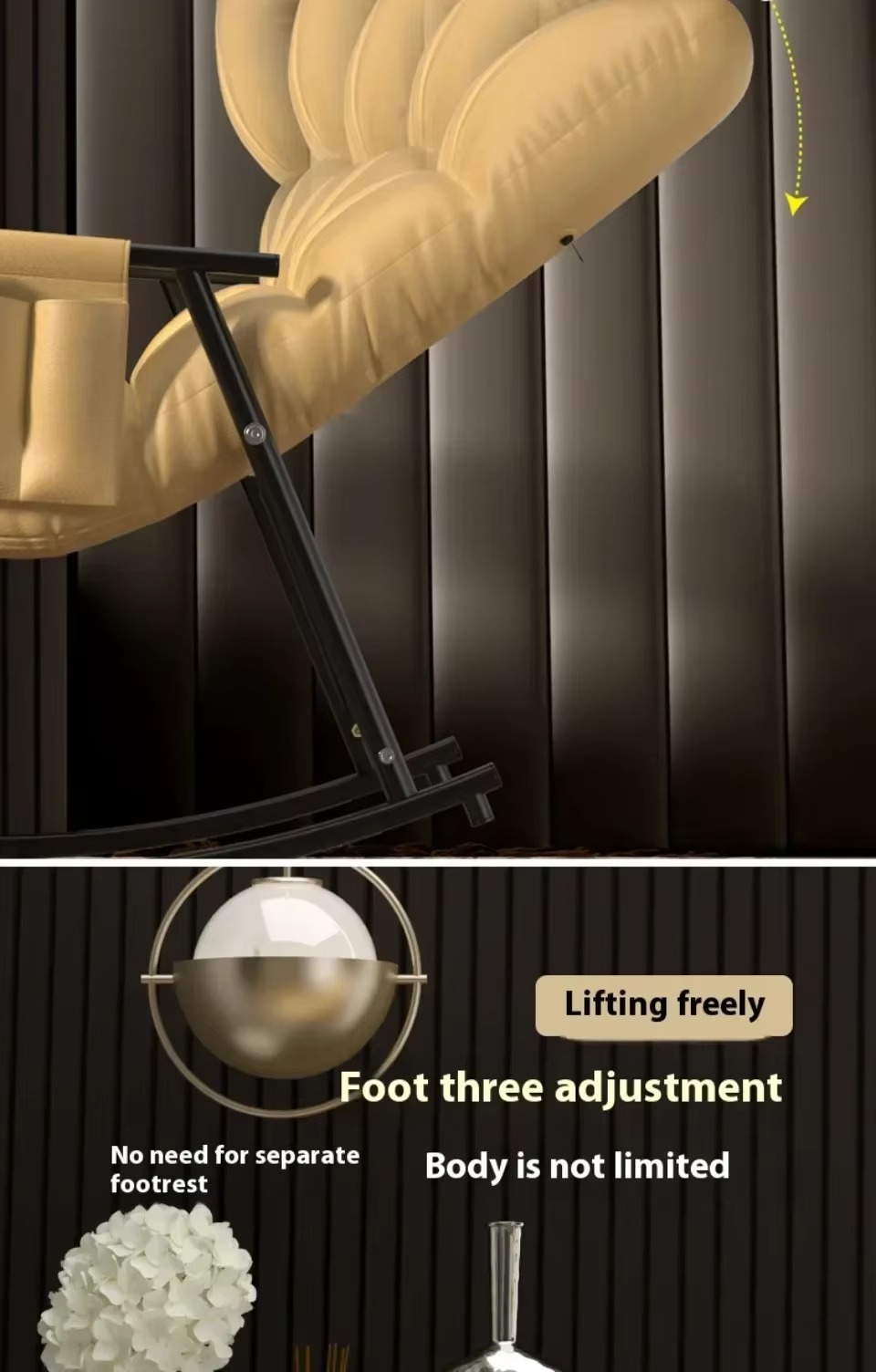 1. إنشاء واحد: الجلوس أو الاستلقاء في أي وقت مع هذا الكرسي الهزاز الداخلي الفريد الذي يمكن تحويله إلى سرير. مع مسند ظهر قابل للتعديل يحتوي على خمسة مستويات ، يمكنك العثور على وضعك المثالي. استمتع بتنوع كرسي صالة الأريكة الكسول هذا الذي يوفر استرخاء مثاليًا.