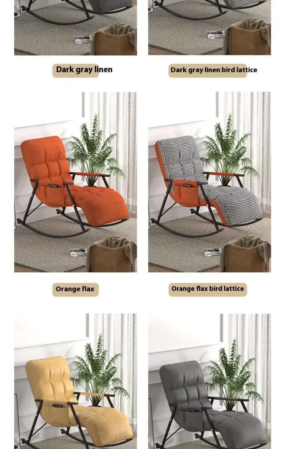 5. تصميم متعدد الاستخدامات: تعزيز أي مساحة مع هذا الكرسي الهزاز الداخلي. مادة قابلة للتنفس ومرنة تضمن الراحة في حين أن تصميمها العملي والجميل يجعلها مناسبة لمختلف الأماكن مثل غرفة النوم وغرفة المعيشة والشرفة ومكان العمل والمزيد.
